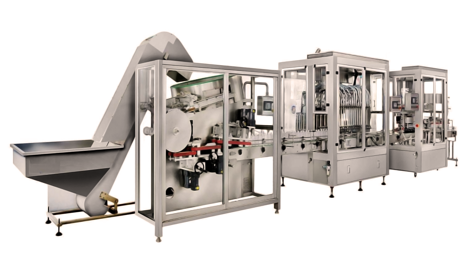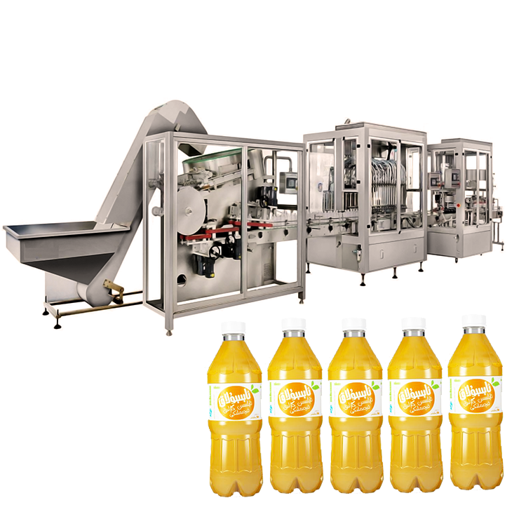 果汁饮料灌装生产线主要用于食品饮料类的液体灌装,可以灌装果汁、牛奶、矿泉水等。其具体的操作流程是通过自动送瓶机到自动洗瓶机,利用灌装旋盖一体机完成灌装以及旋盖操作后,进行灯检,设计了自动风干机装置,还可以对瓶口进行热收缩,以确保精准度,完成以上操作后自动贴标。