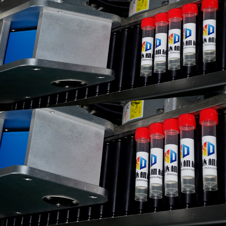 卧滚式打码贴标机主要适用于不能立式输送的圆型灌、瓶、水针剂等产品的贴标.贴标精度高、使用稳定性好、贴标平整、不起皱,无气泡,贴标合格率高达99%;有产品计数功能,拥有打码功能。整机可移动,在规定的范围内根据瓶子的大小可进行调节,设备可单独使用也可以和灌装旋盖一体机连线使用.