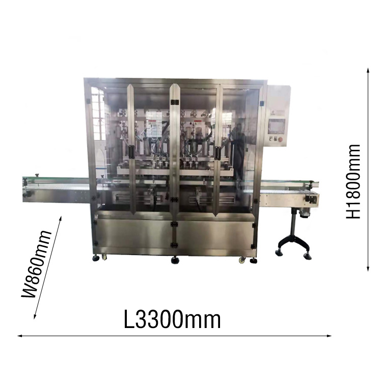 外形美观,具有界面友好,适应性强、操作简单、灌装量准确,维护方便等特点。该设备采用304不锈钢材质制造,外型方正美观,拥有八个灌装嘴,灌1-5升产品皆可通用。活塞式灌装广泛用于各种